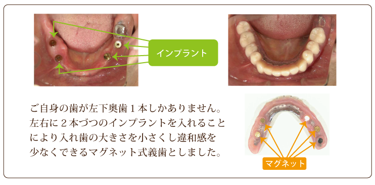 [ CASE2 ] 自分の歯とインプラントを使ったマグネット式義歯